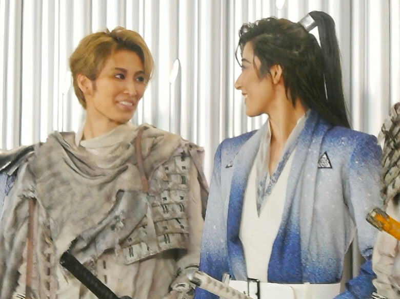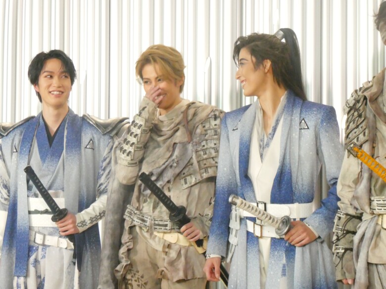 そして、その言葉を聞いて、ワイルドな開襟衣裳を着用する浦川さんに、「隠して!(笑)」と伝えるRIKUさんと、焦る浦川さんとのコンビもやはり可愛い。本編では同じ尊武国チームのお2人。劇中での関係性も見所のようで楽しみです。