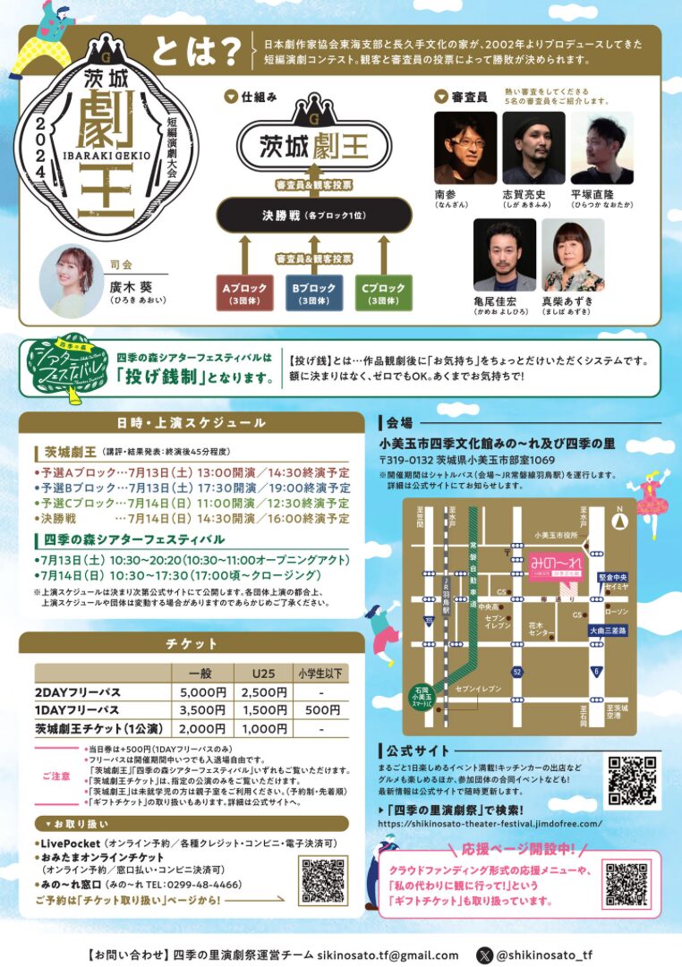 四季の里演劇祭は、2024年7月13日(土)、14日(土)に小美玉市四季文化館みの〜れで行われる。