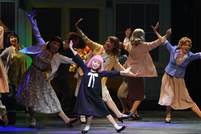 アーニャは人の心が読める超能力を持った少女。とはいえ天才かといえばそうではなく、子供らしい無邪気さがあり、大人達が振り回されている感じが可愛い。演じている泉谷さんは現在8歳という情報を見たのですが、細かい動線や振り付け、歌をしっかりこなしつつ、大人達のユーモアある芝居にも伸び伸びと乗っかる余裕さえ感じました。しかも今回が初舞台ということで、将来が有望すぎる女優さんです。ワクワク!!