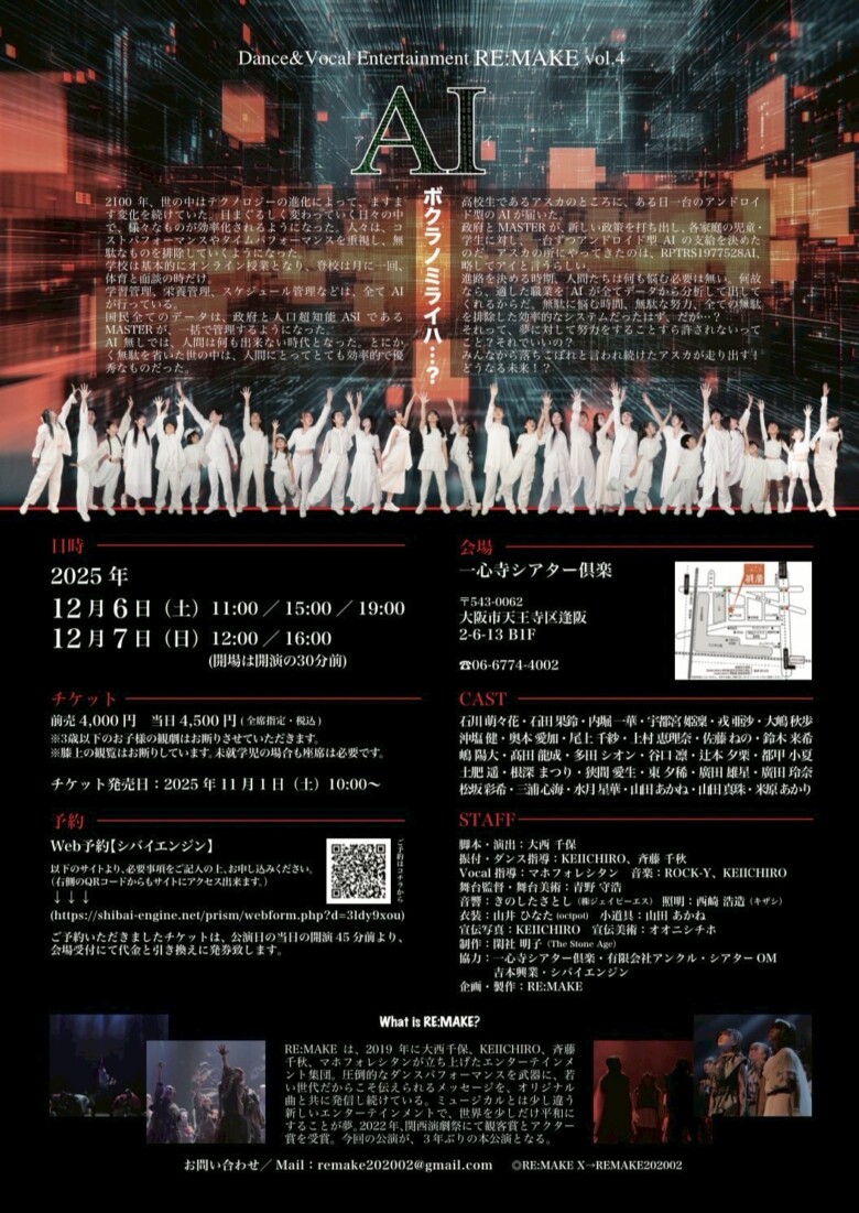 Dance&Vocal Entertainment RE:MAKE vol.4『AI』が12月6日(土)から大阪・一心寺シアター倶楽で上演される。