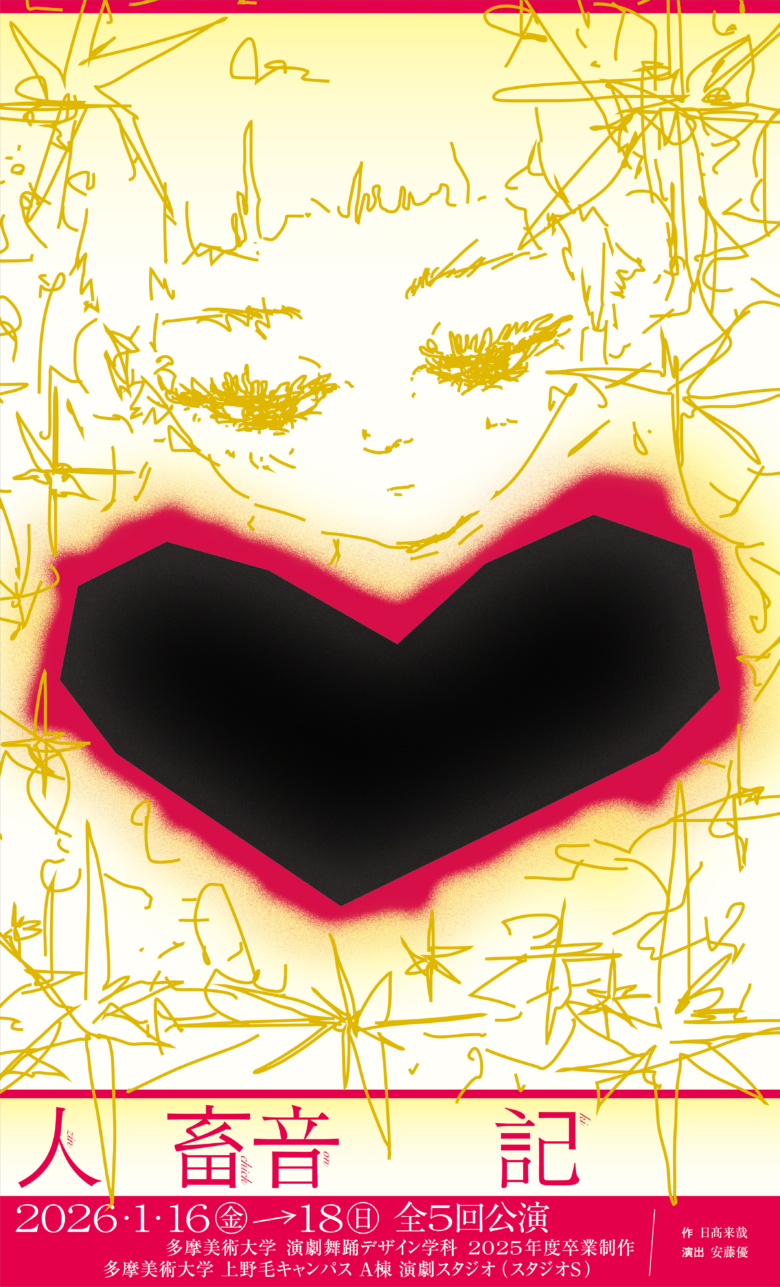 多摩美術大学 演劇舞踊デザイン学科 2025年度卒業制作『人畜音記』が2026年の1月16日(金)から18日(日)まで、多摩美術大学の上野毛キャンパス(世田谷区)にて上演される。
