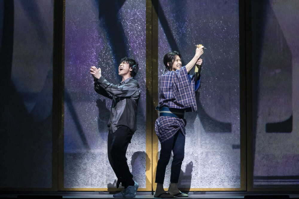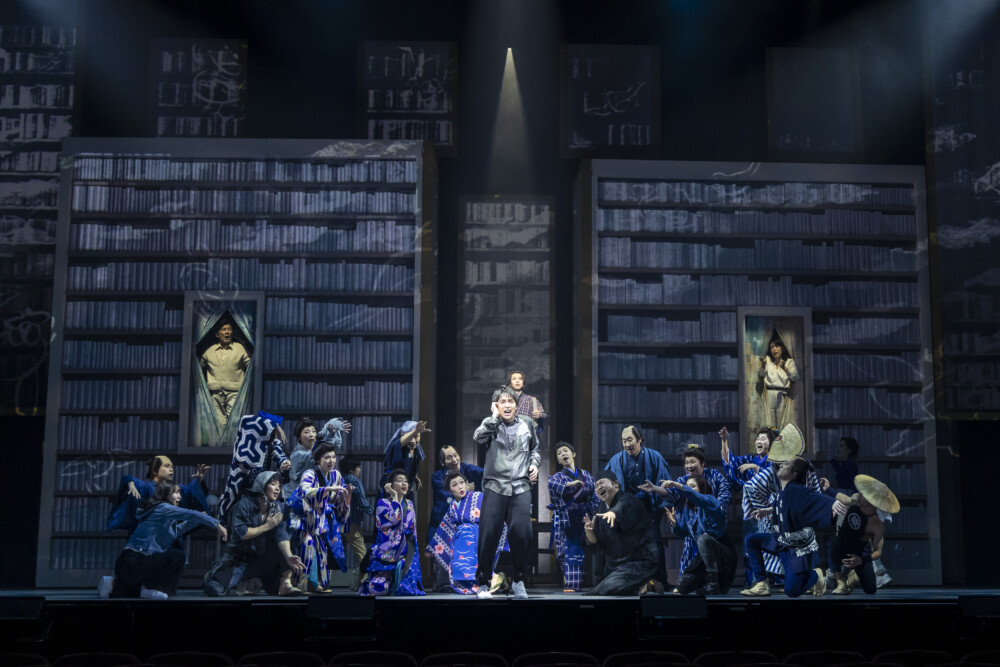 舞台演出も目を見張るものがあります。場面転換のたびにセットが大きく変化し、時代や場所ごとの空気感を的確に表現しています。パネルのような装置がまるでテトリスのように動きながら短冊、本棚や建物・・と場面を切り替える様子は、スムーズで物語の流れを止めることがありません。