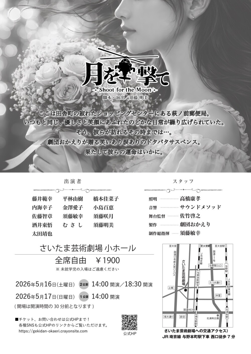さいたま市を拠点に活動する市民劇団・劇団おかえりが、第18回公演『月を撃て〜Shoot for the Moon〜』を2026年5月16日(土)・17日(日)に、さいたま芸術劇場小ホールにて上演する。