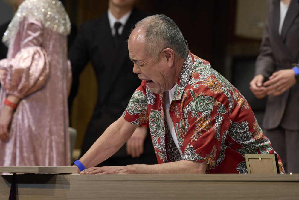 そこに、騒動に巻き込まれる葬儀社の担当らしき女性(蘭寿とむ)や、さらに事態をややこしくする別れた夫(田中要次)が登場し、コメディ色は一気に加速します。葬儀というテーマが持つ現実的な重みと行き来していた意識が、「お葬式コメディとして笑って楽しめばいいんだ!」と、振り切ることでコメディとして笑っている間に物語が進んでいきました。